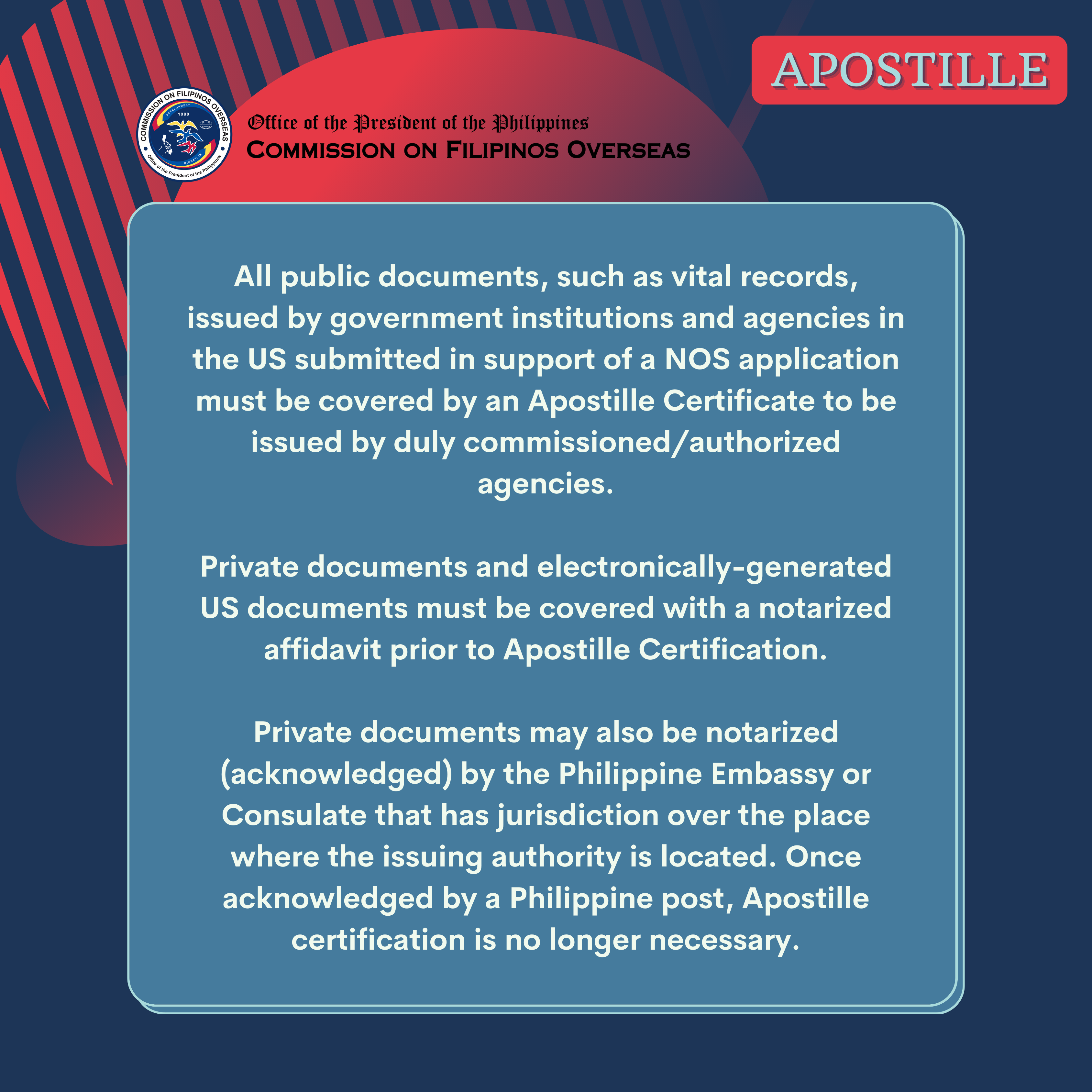 Exchange visitor participants from the Philippines applying for the waiver of the two-year home-residency requirement through the No Objection Statement (NOS) issued by the Philippine Government shall comply with the following requirements to be submitted in three (3) copies (1 set of original copies and 2 sets of photocopies):